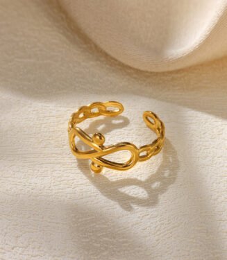 Minimalist Infinity Symbol Open Ring for Women – Gold Stainless Steel Adjustable Ring