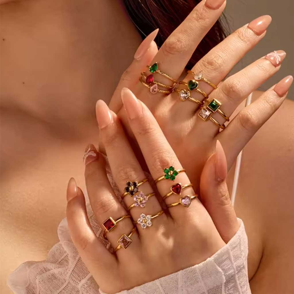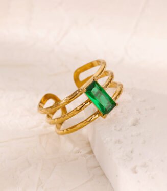 Green Square Zircon Rings for Women Stainless Steel
