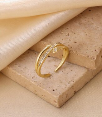 Original price was: 550৳ .300৳ Current price is: 300৳ .Gold Color Copper Crystal Finger Ring