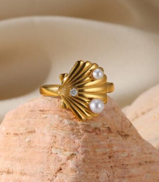 Pearl Wave Rings for Women Adjustable Stainless Steel