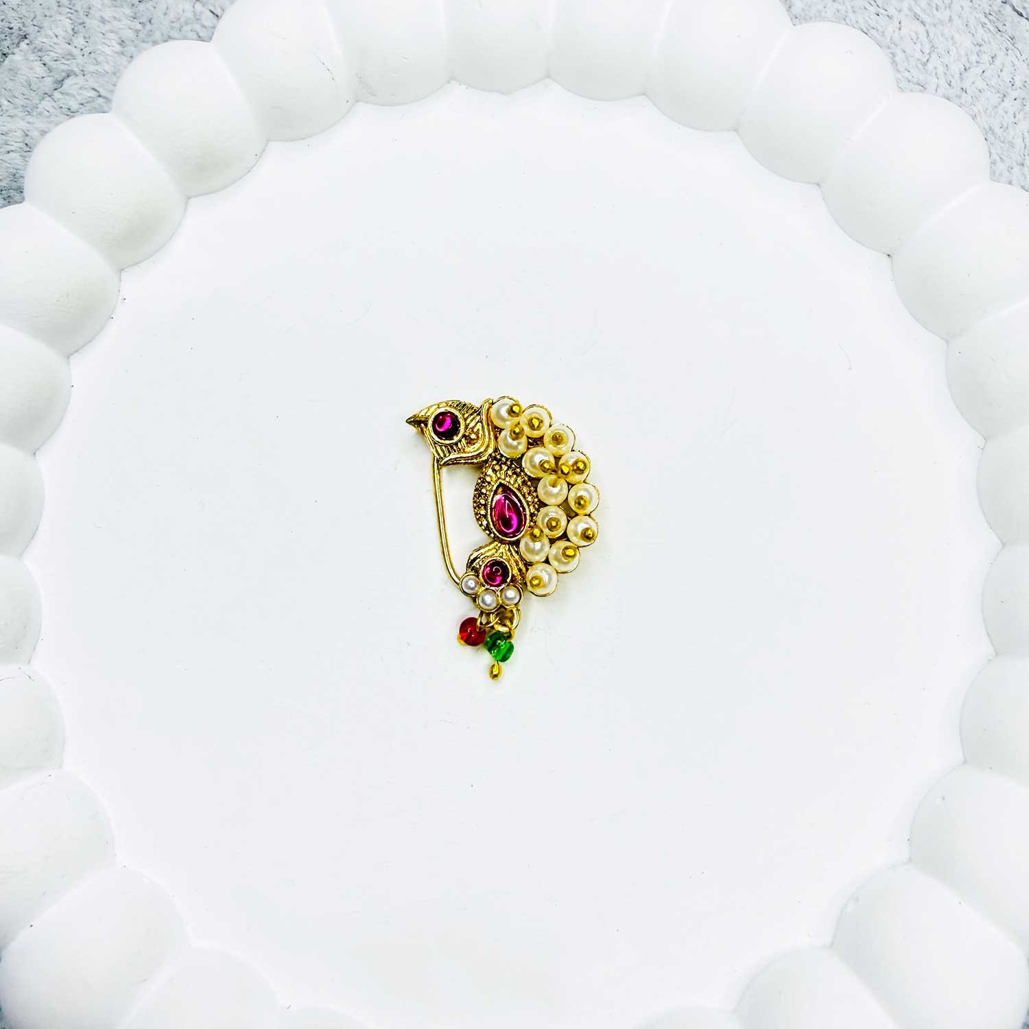 Enhance your traditional look with our beautifully crafted Marathi Nath, inspired by classic Maharashtrian jewelry designs. These elegant nose rings are carefully selected to reflect timeless ethnic style, making them perfect for weddings, festivals, and special occasions.