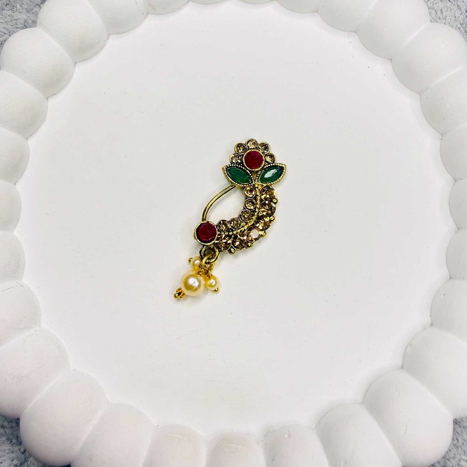 Enhance your traditional look with our beautifully crafted Marathi Nath, inspired by classic Maharashtrian jewelry designs. These elegant nose rings are carefully selected to reflect timeless ethnic style, making them perfect for weddings, festivals, and special occasions.