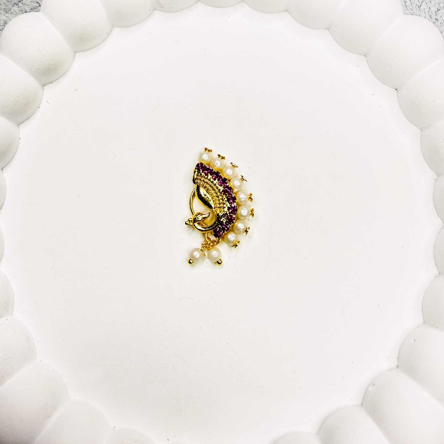 Enhance your traditional look with our beautifully crafted Marathi Nath, inspired by classic Maharashtrian jewelry designs. These elegant nose rings are carefully selected to reflect timeless ethnic style, making them perfect for weddings, festivals, and special occasions.