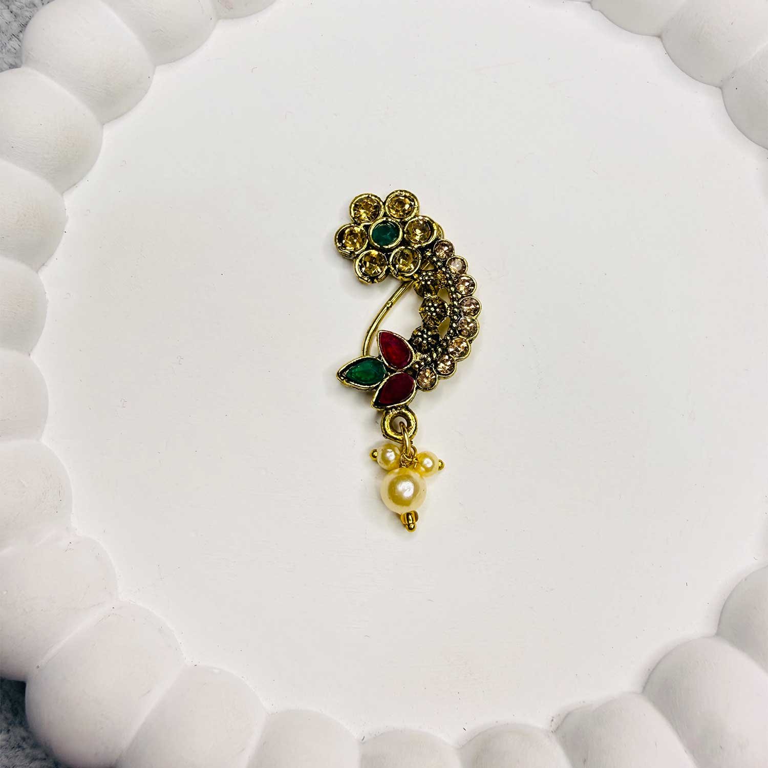 Enhance your traditional look with our beautifully crafted Marathi Nath, inspired by classic Maharashtrian jewelry designs. These elegant nose rings are carefully selected to reflect timeless ethnic style, making them perfect for weddings, festivals, and special occasions.