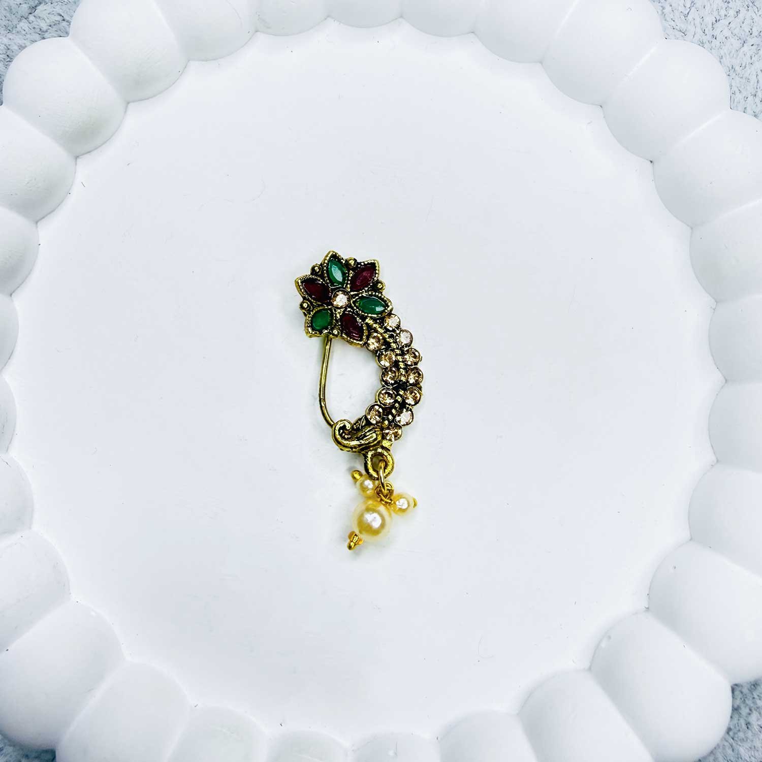 Enhance your traditional look with our beautifully crafted Marathi Nath, inspired by classic Maharashtrian jewelry designs. These elegant nose rings are carefully selected to reflect timeless ethnic style, making them perfect for weddings, festivals, and special occasions.