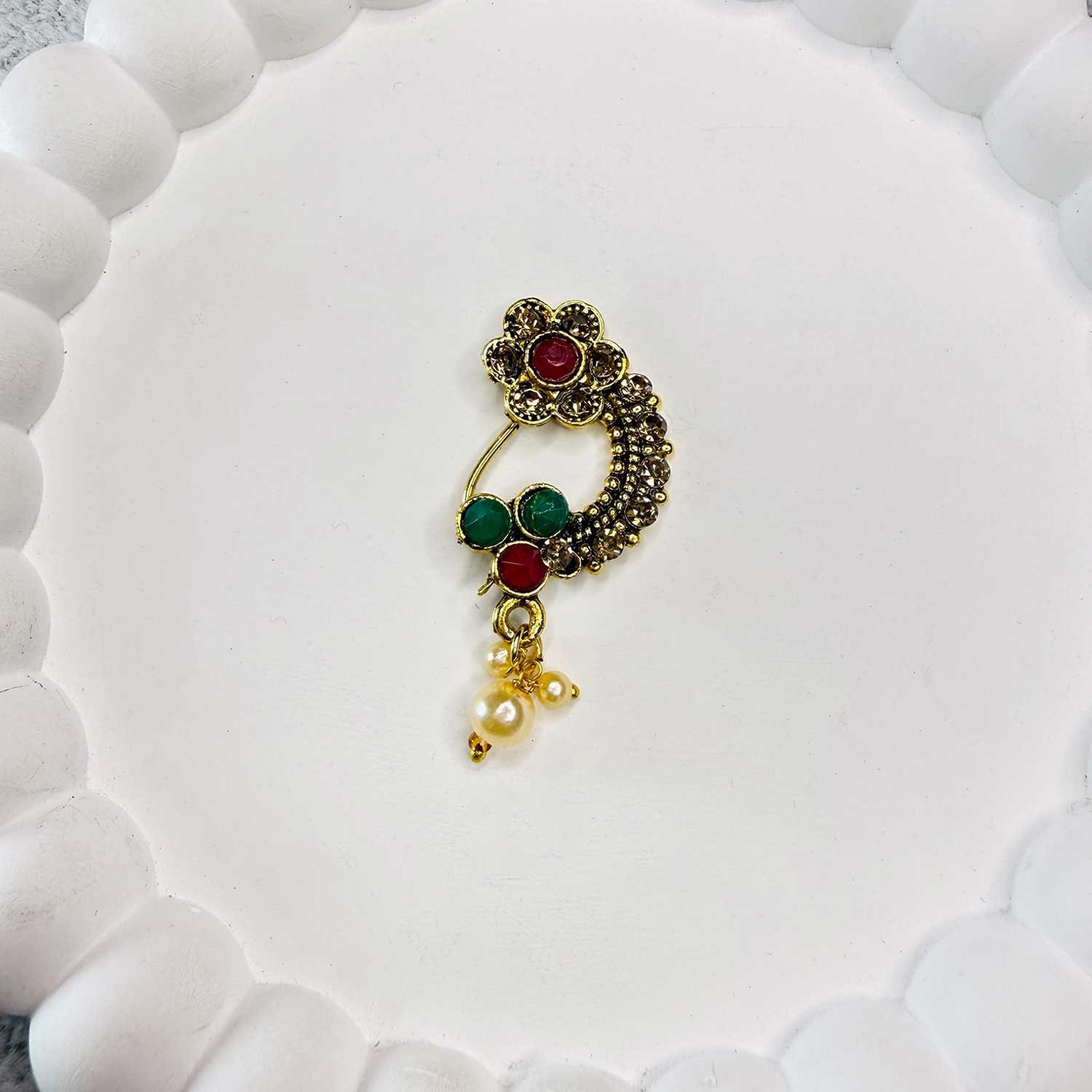 Enhance your traditional look with our beautifully crafted Marathi Nath, inspired by classic Maharashtrian jewelry designs. These elegant nose rings are carefully selected to reflect timeless ethnic style, making them perfect for weddings, festivals, and special occasions.