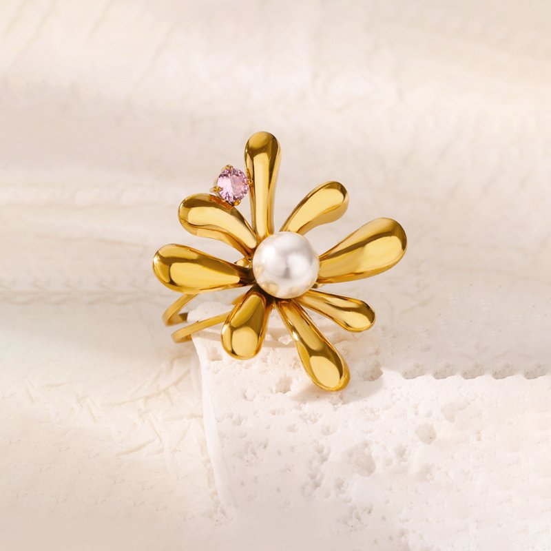 Flower Imitation Pearl Rings For Women