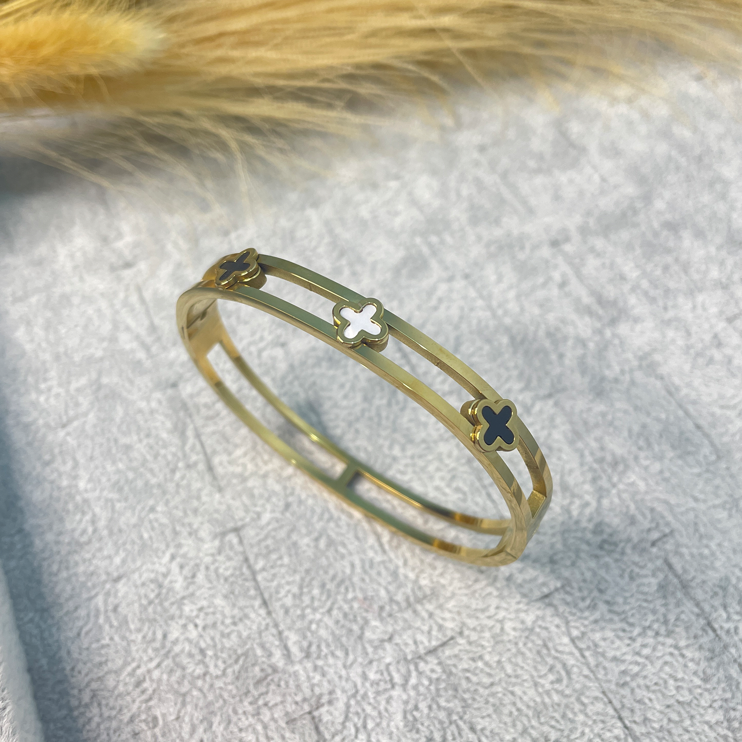 Gold Color Flower Stainless Steel Bracelet for Women