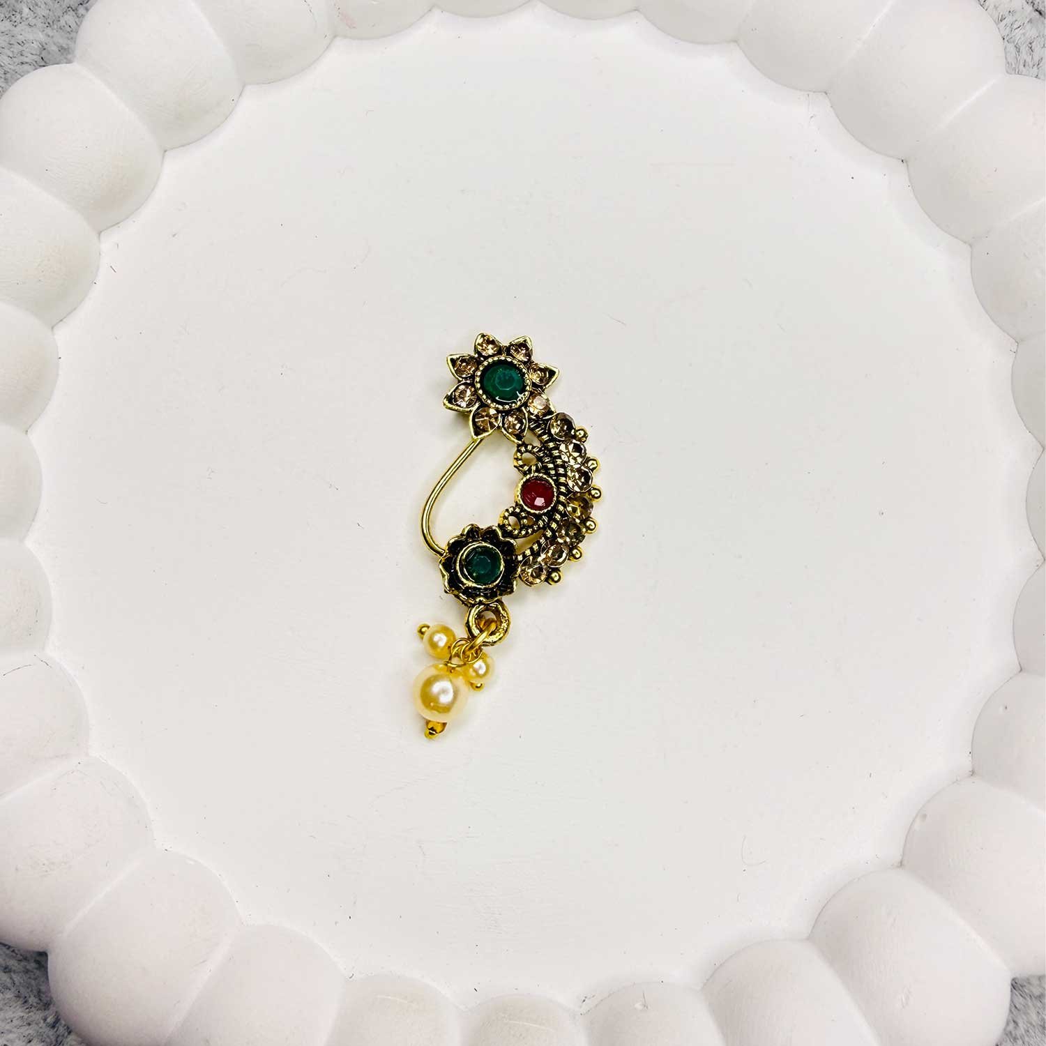 Enhance your traditional look with our beautifully crafted Marathi Nath, inspired by classic Maharashtrian jewelry designs. These elegant nose rings are carefully selected to reflect timeless ethnic style, making them perfect for weddings, festivals, and special occasions.