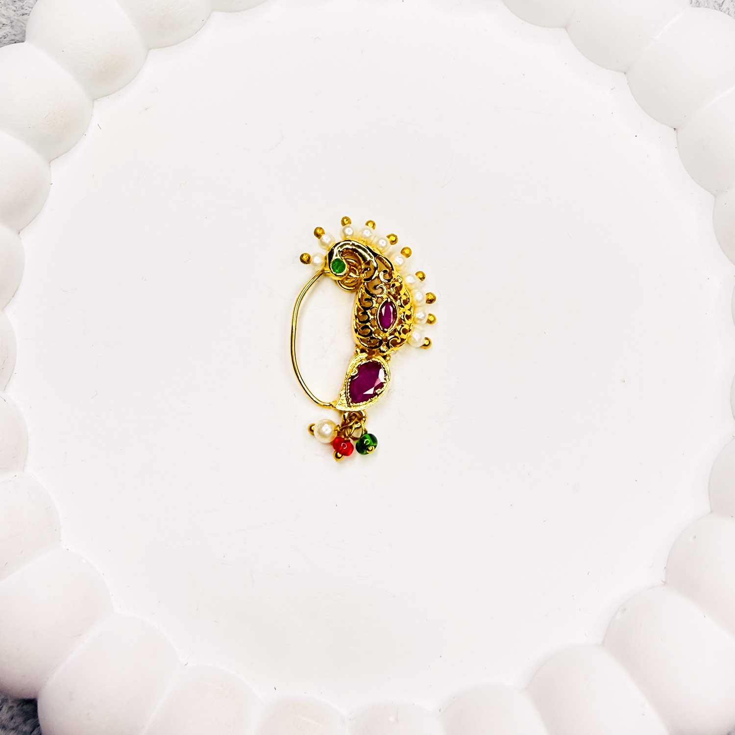 Enhance your traditional look with our beautifully crafted Marathi Nath, inspired by classic Maharashtrian jewelry designs. These elegant nose rings are carefully selected to reflect timeless ethnic style, making them perfect for weddings, festivals, and special occasions.