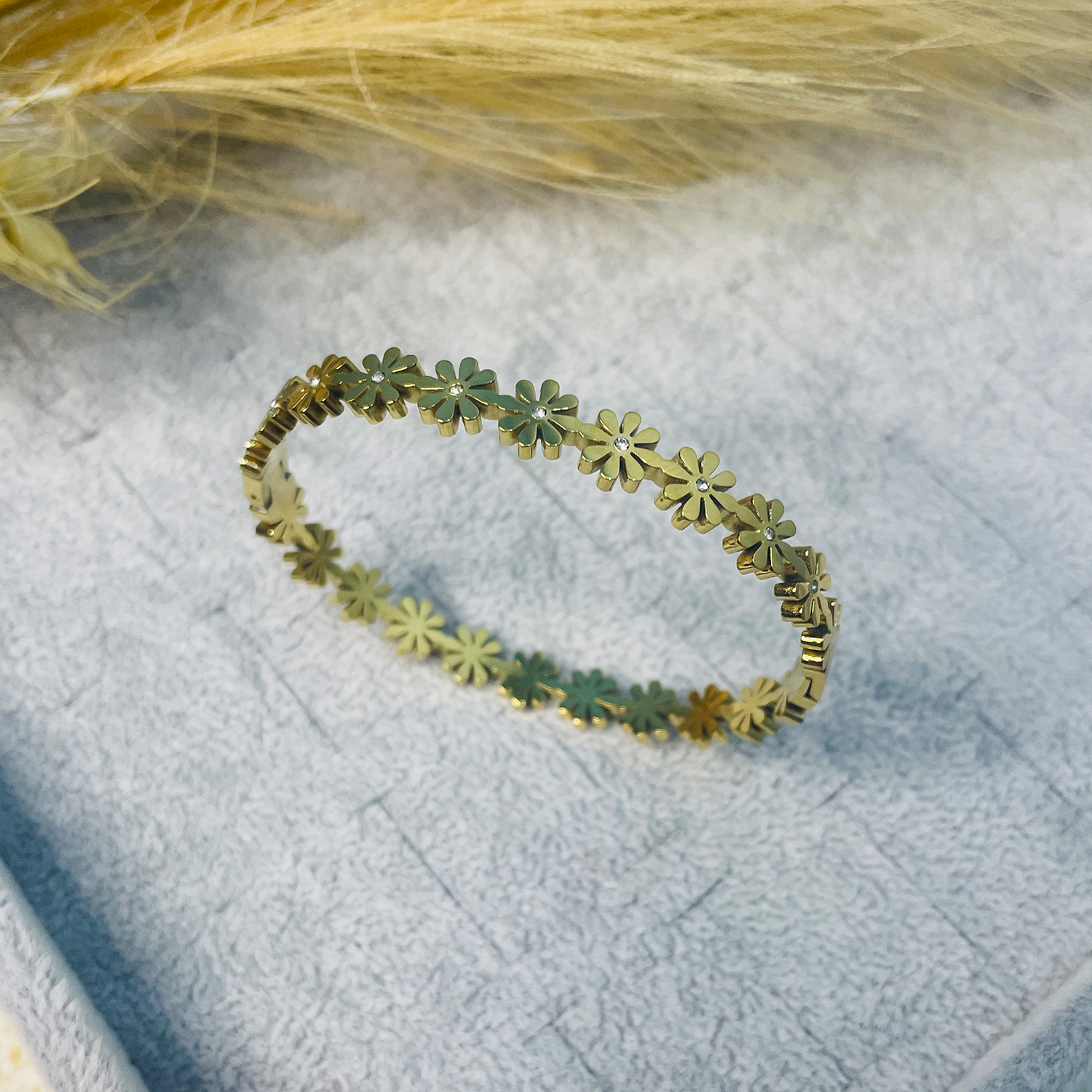316L Stainless Steel Flower Cuff Bracelet Bangle for Women