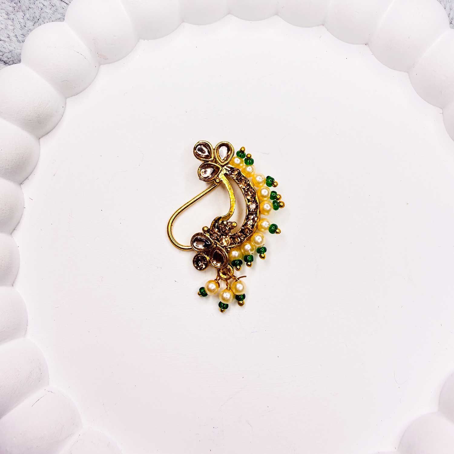 Enhance your traditional look with our beautifully crafted Marathi Nath, inspired by classic Maharashtrian jewelry designs. These elegant nose rings are carefully selected to reflect timeless ethnic style, making them perfect for weddings, festivals, and special occasions.