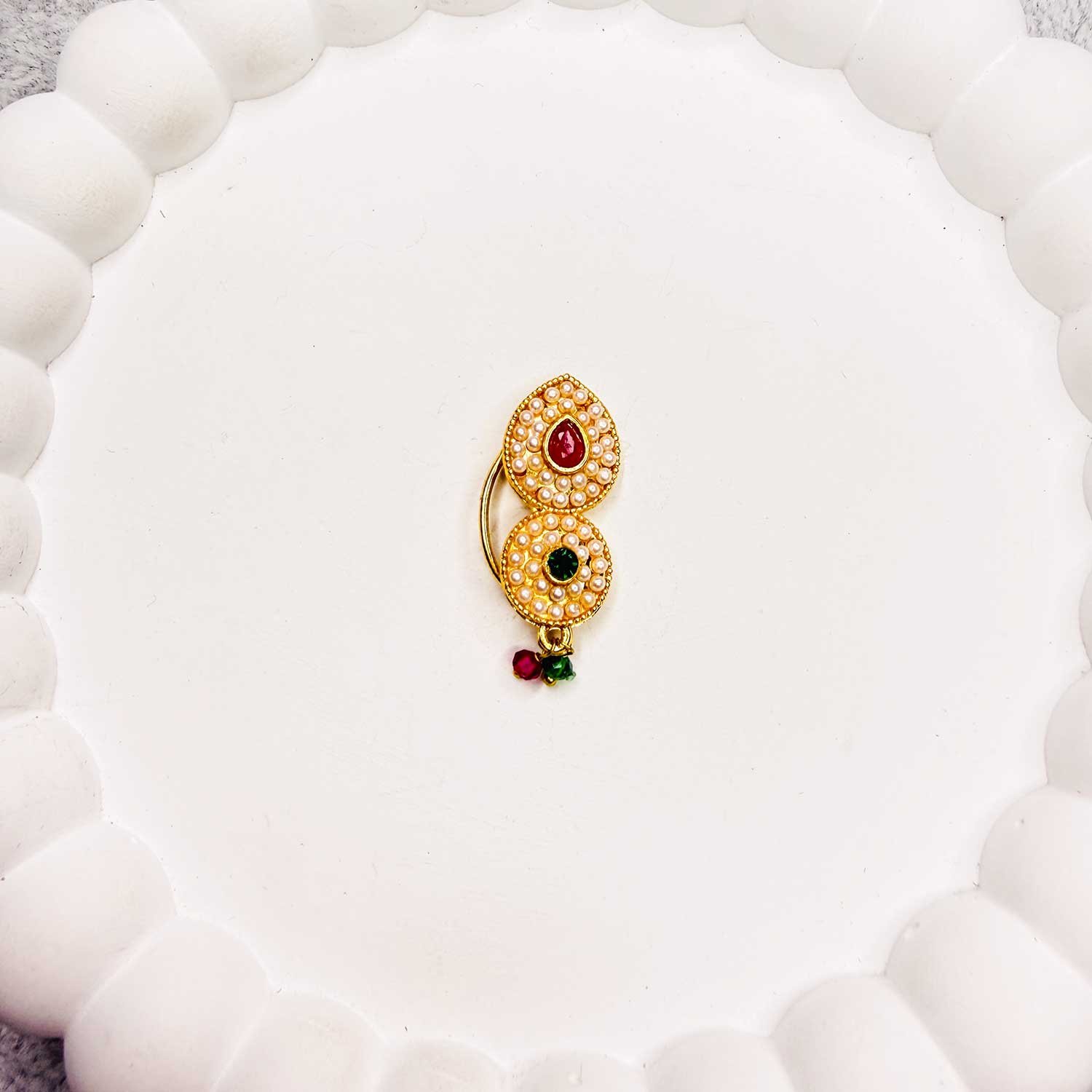 Enhance your traditional look with our beautifully crafted Marathi Nath, inspired by classic Maharashtrian jewelry designs. These elegant nose rings are carefully selected to reflect timeless ethnic style, making them perfect for weddings, festivals, and special occasions.