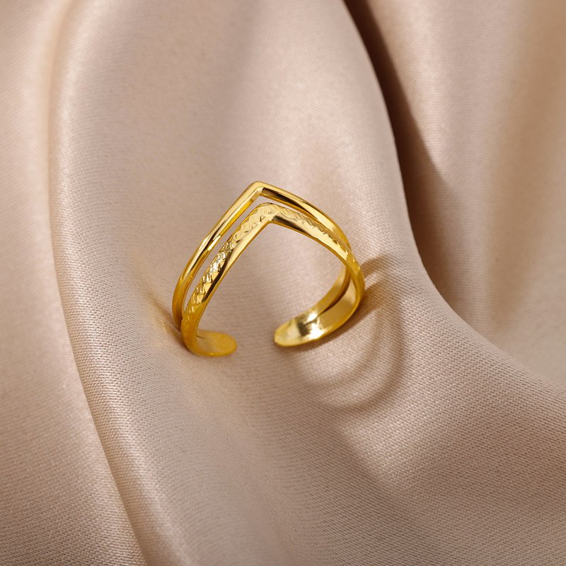 V Shaped Ring for Women Gold Plated Stainless Steel – Minimalist Adjustable Ring
