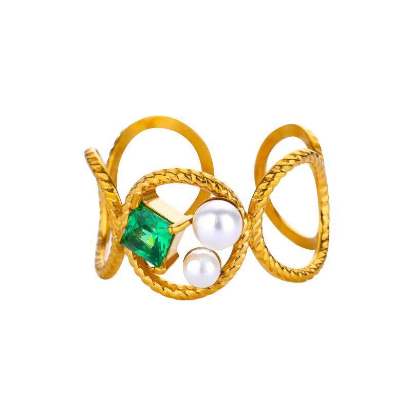 Zircon Imitation Pearl Round Stainless Steel Ring For Women