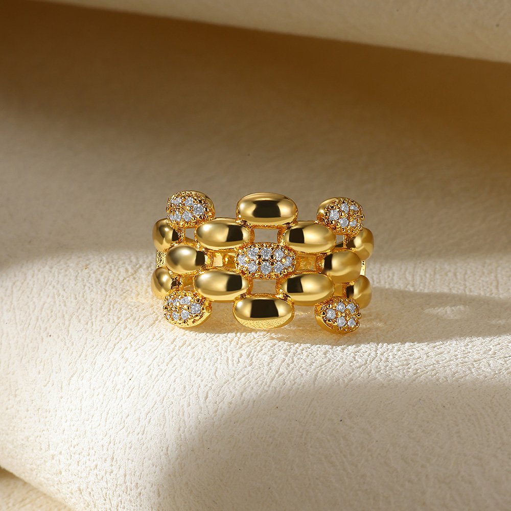 Zircon Stainless Steel Gold Color Women Finger Ring